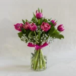 Nuestro exclusivo arreglo de Tulipanes Premium es una oda a la sofisticación y la frescura primaveral. Seleccionamos cuidadosamente cada tallo en su punto exacto de apertura para garantizar un espectáculo visual que evoluciona día tras día en tu hogar.