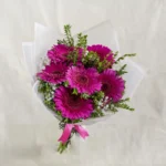 Ver productosAñade un toque de color intenso y alegría a cualquier espacio con nuestro ramo de Gerberas Fucsia. Este diseño combina la elegancia geométrica de la gerbera con la delicadeza de la Gypsofila (nube) y el frescor verde del Ruscus. Presentado en un sofisticado envoltorio blanco con un lazo satinado a juego, es el regalo ideal para cumpleaños, agradecimientos o simplemente para iluminar el día de alguien especial.